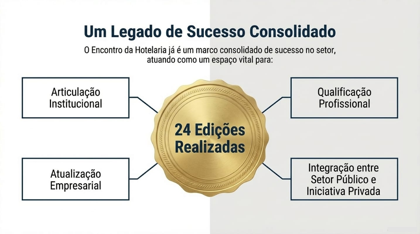 Ao longo de suas 24 edições, o Encontro da Hotelaria consolidou-se como uma importante plataforma de articulação institucional, qualificação profissional e estímulo à competitividade empresarial.